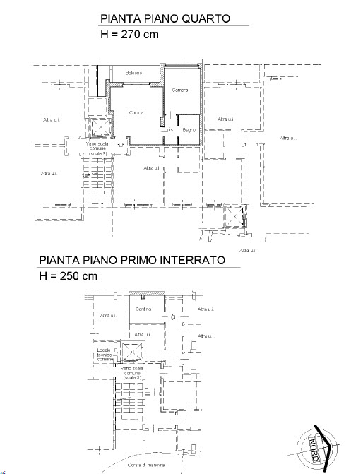 INGRESSO living su SOGGIORNO con ANGOLO COTTURA a vista, CAMERA, DISIMPEGNO, BAGNO, ampio BALCONE, CANTINA, possibilità di BOX auto.