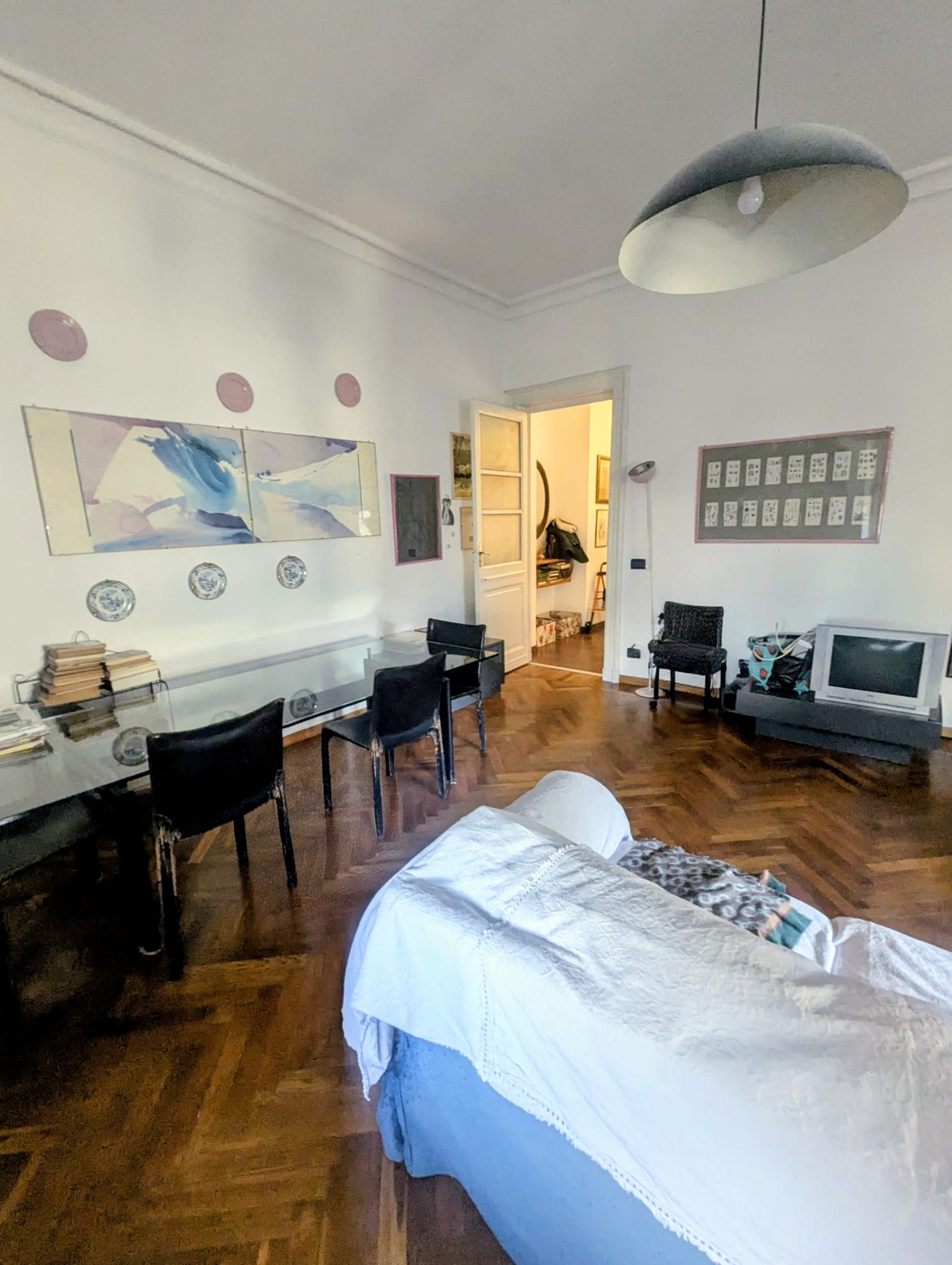 A pochi passi dal Tribunale e da piazza Benefica, comodo alla stazione di ferroviaria e della metro di Porta Susa, in stabile d'epoca ottimamente mantenuto proponiamo luminoso alloggio di ca. 118 MQ composto da: